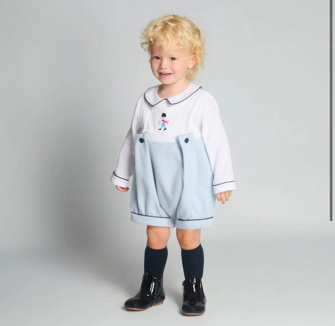 Boys blue Soilder embroidery romper , coat & hat set ( 2 week wait